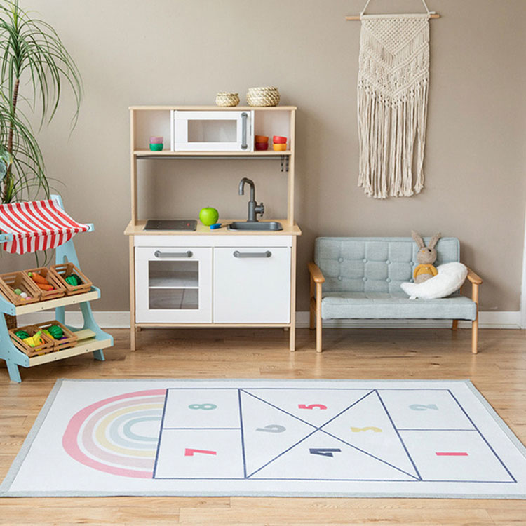 Den måler 100 x 150 cm, dækker et stort område af dine gulve og giver dit barn mere plads til at bevæge sig rundt. Dette børnetæppe har ekstremt legende og lærerige designs, der ikke kun fremmer aktiv læring og hjælper børn med at forbedre koordinations- og balanceevner, men også tilføjer en visuel appel til dit rum.
