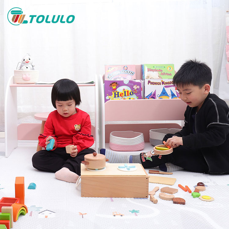 Dette bogreolsæt til småbørn har til formål at pleje deres rene barnlighed. Børnereolsættet er et perfekt aktivitetscenter for småbørn at nyde at læse, lege, spise osv. Poleret rundt hjørne for at forhindre stød. Lavet af E0-grad MDF med miljøvenlig maling, dette børnebogssæt giver stærk støtte og stor sikkerhed. Glatte overflader og afrundede hjørner beskytter børns hud. Yderligere 3-lags hylder kan give mere opbevaringsplads til bøger og legetøj.