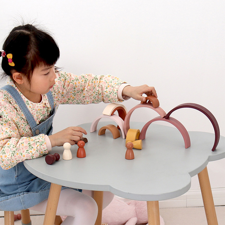Montessori stablelegetøj er en slags legetøj til tidlig uddannelse og intelligens. Et minimalt og tidløst design, dette legetøj er velegnet til babyer og børn i alle aldre. I byggeprocessen skal du dyrke børns fantasi og balanceevne, så børn kan give fuld leg til deres fantasi og skabe deres egne former efter behag. Lær rumlig bevidsthed og hvordan tingene hænger sammen og skilles ad. Øv ligevægt ved at opdage, hvordan brikker stables, balancerer eller vælter. En række byggeklodser kan ses i broer, tunneller, hegn og hytter. En regnbueblok kan blive en vippe. Enkelformer og smukke farver er omhyggeligt lavet, som ikke kun kan stimulere fantasien, men også fortsætte med at lege, og skabe et smukt rum som indendørs dekorationer.